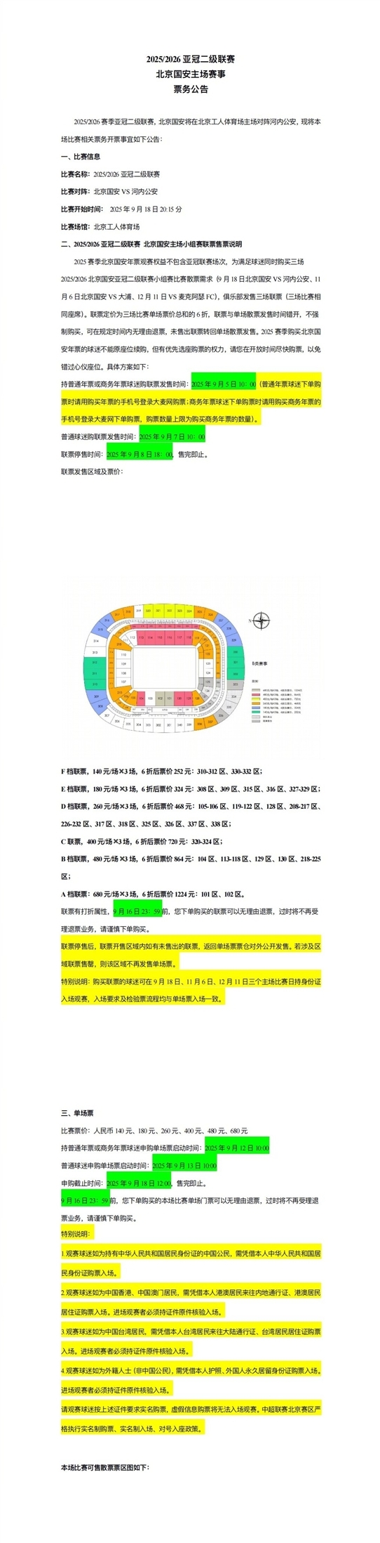 2025赛季亚冠二级联赛小组赛,北京国安主场对阵河内公安队的赛事将于北京工人体育场举行。现正式开放本场单场比赛及小组赛套票申购通道,具体售票安排请仔细查阅附图公告详情。