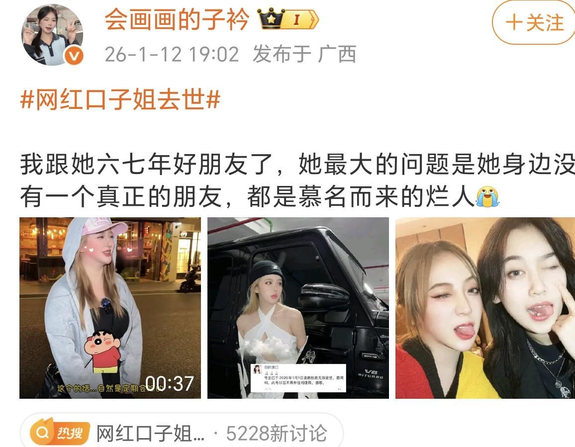 1月12日,口子姐去世的消息正式在网络上传开。
